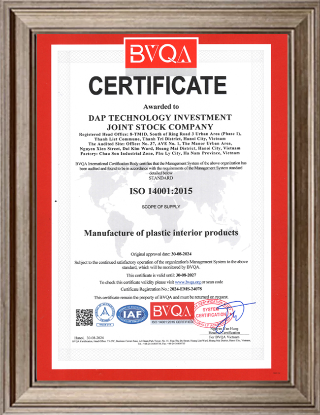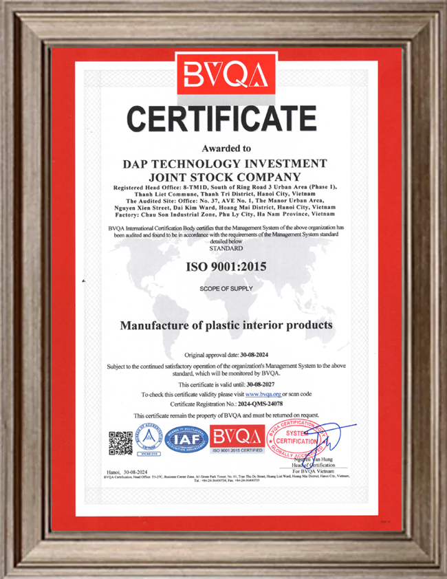 DAP Technology Investment Joint Stock Company is a leading enterprise with a modern machinery specializing in the production of interior products in civil construction. DAPro has quickly affirmed its leading position in the domestic and international markets, based on the foundation of a team of highly skilled personnel with over 20 years of experience and the motto of action is integrity and absolute perseverance associated with the goal of “Customer is the center” has contributed to create high quality products to bring to the market to serve customers and affirm the DAPro brand. Our products are: