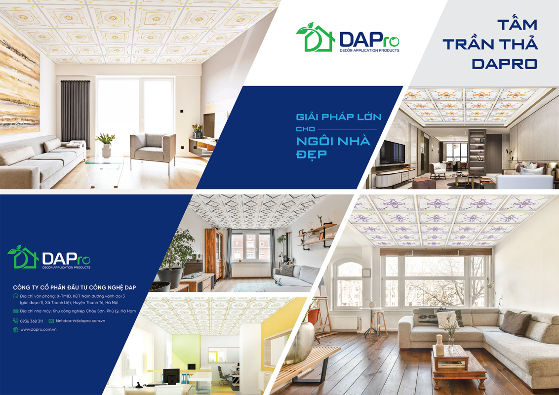 DAPro suspended ceiling panels are one of the increasingly popular materials among consumers in the interior industry. With superior features such as diverse colors, flat, smooth surface, waterproof, heat-resistant, lightweight, DAPro suspended ceiling panels are an effective, convenient solution for simple and economical processing.